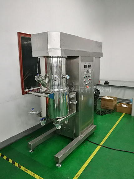 目前常見的行星攪拌機(jī)通常有兩個(gè)低速行星攪拌槳(通常為多斜槳葉式,麻花式,框式),一個(gè)或兩個(gè)高速行星攪拌槳(分散盤)和刮壁槳組成。